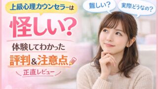 資格・勉強 上級心理カウンセラーは怪しい?受講して感じたリアルな評判と注意点 上級心理カウンセラーは怪しい?民間資格で意味あるのか不安な方へ。実際に受講し一度不合格も経験した私が、口コミ・評判・国家資格との違い・注意点を正直に解説します。 2026.03.29 資格・勉強