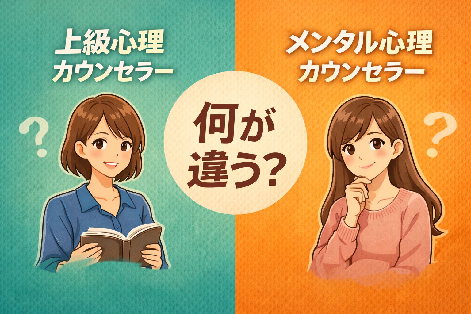 上級心理カウンセラーとメンタル心理カウンセラーの違いは、「深さ」と「専門性」です。